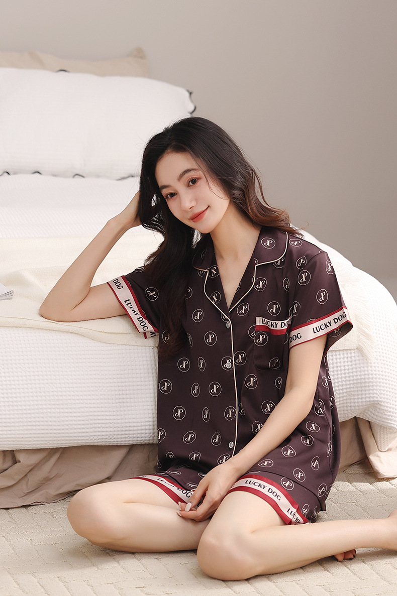 High-end light luxury thin silk loungewear short-sleeved suit