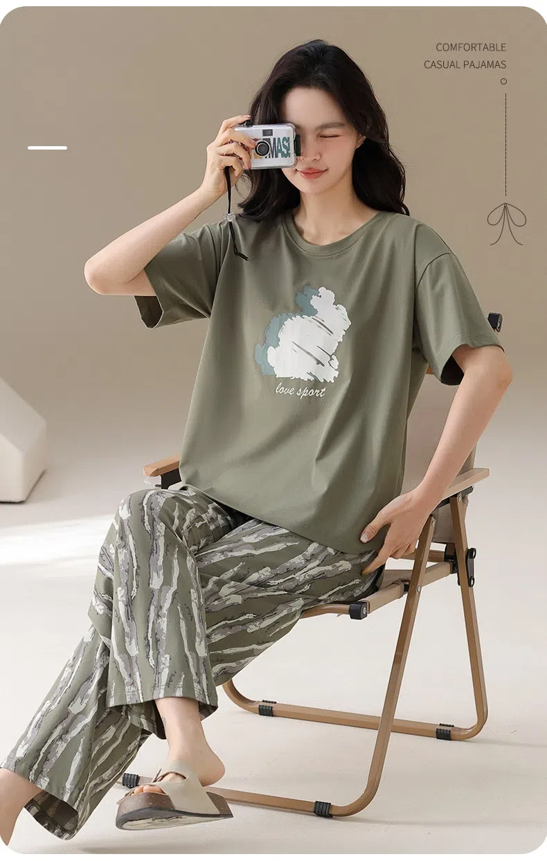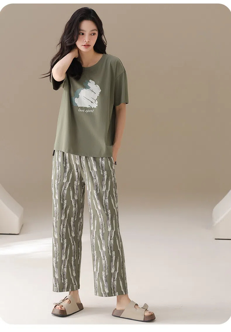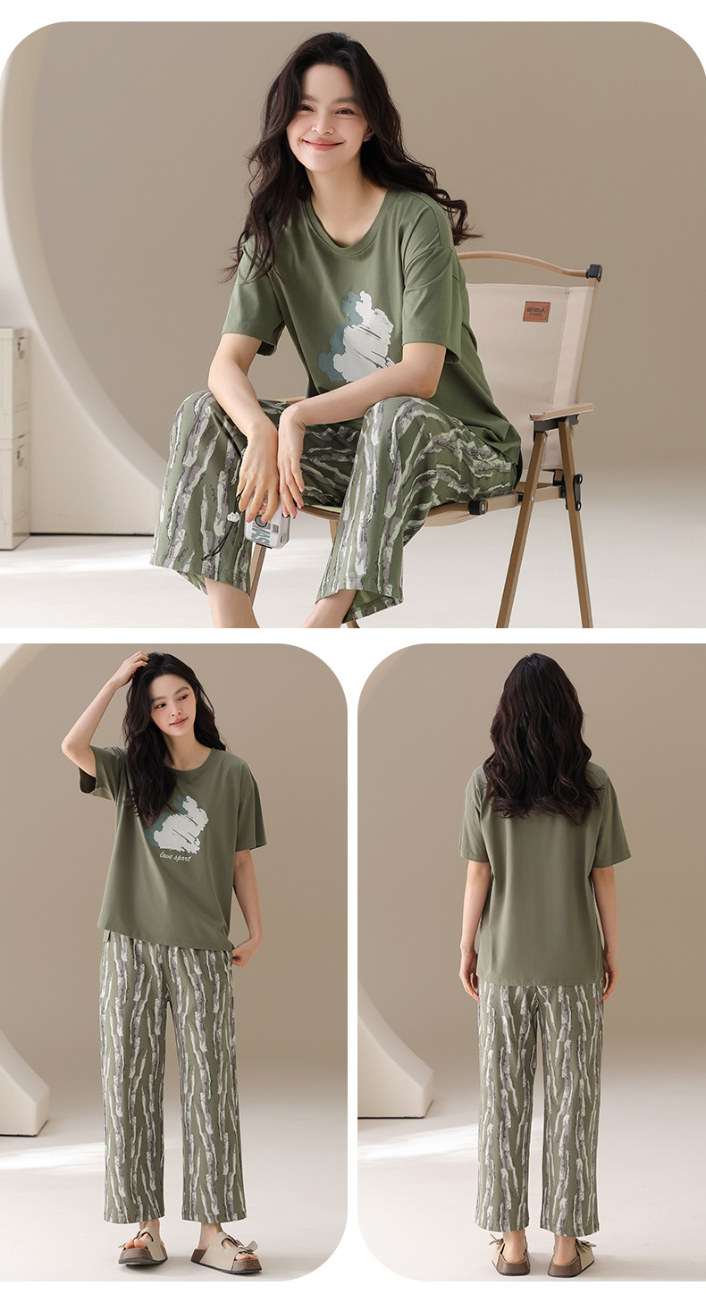 Cotton thin short-sleeved trousers printed loungewear