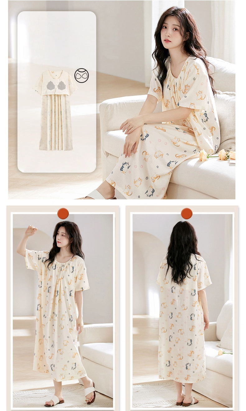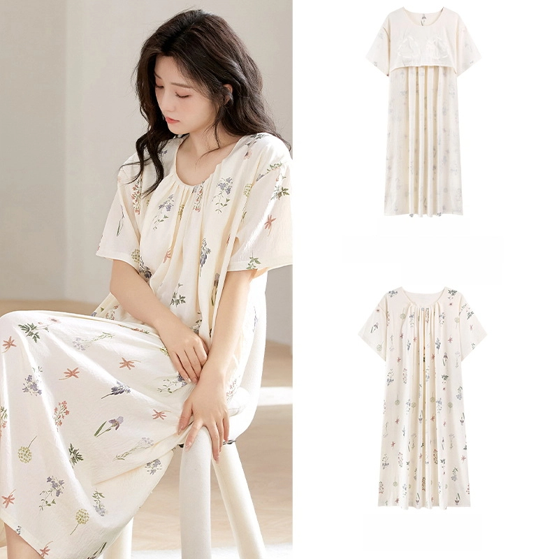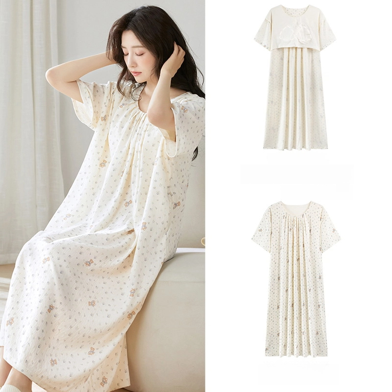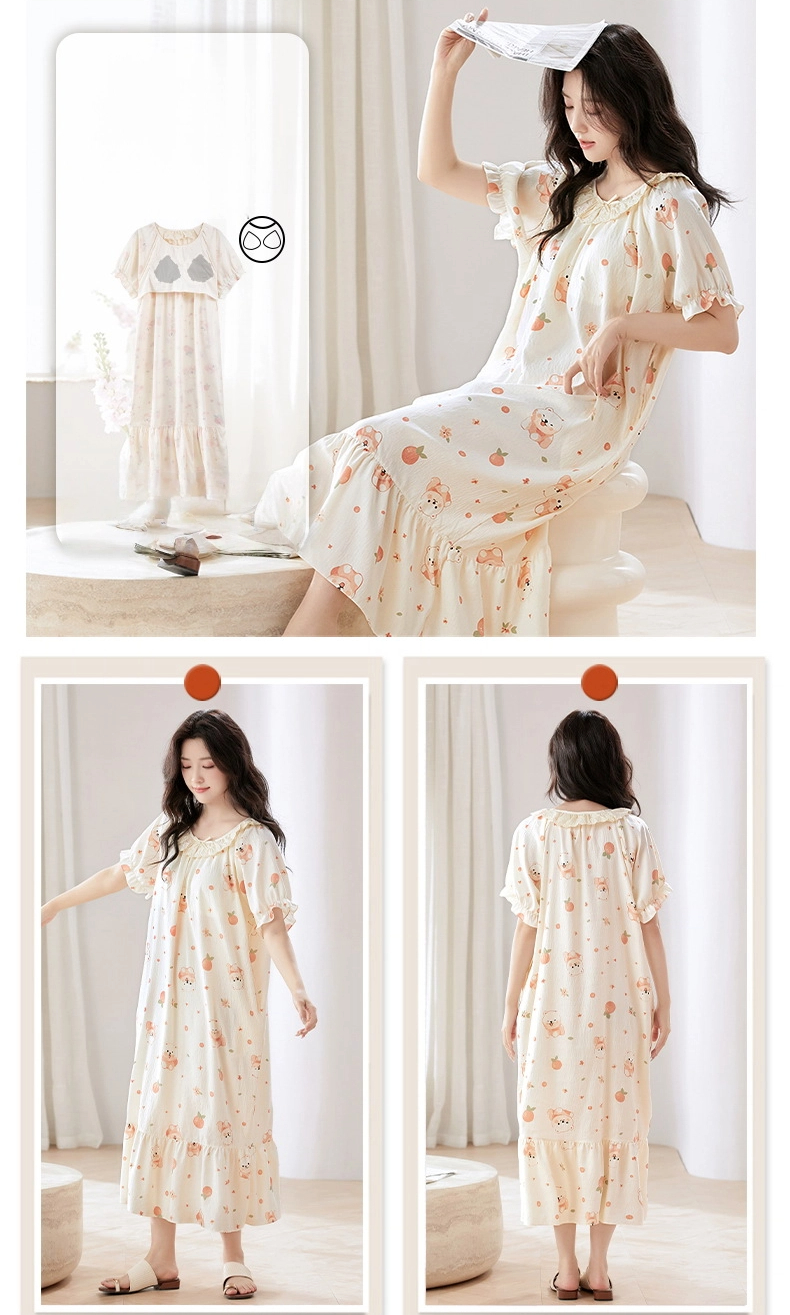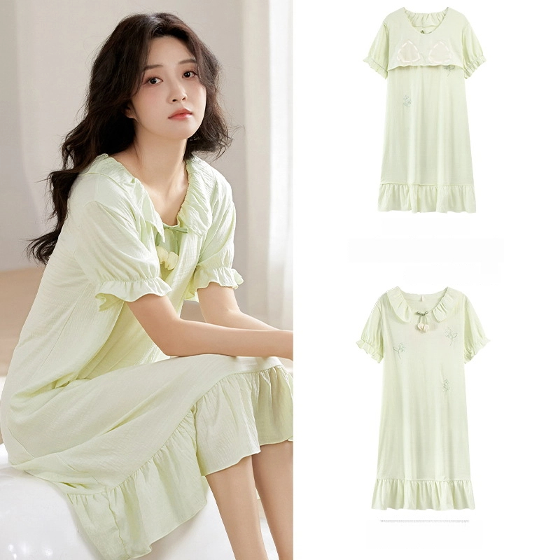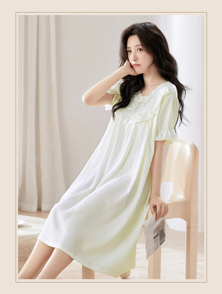 Princess style thin loose short-sleeved cloud cotton nightdress