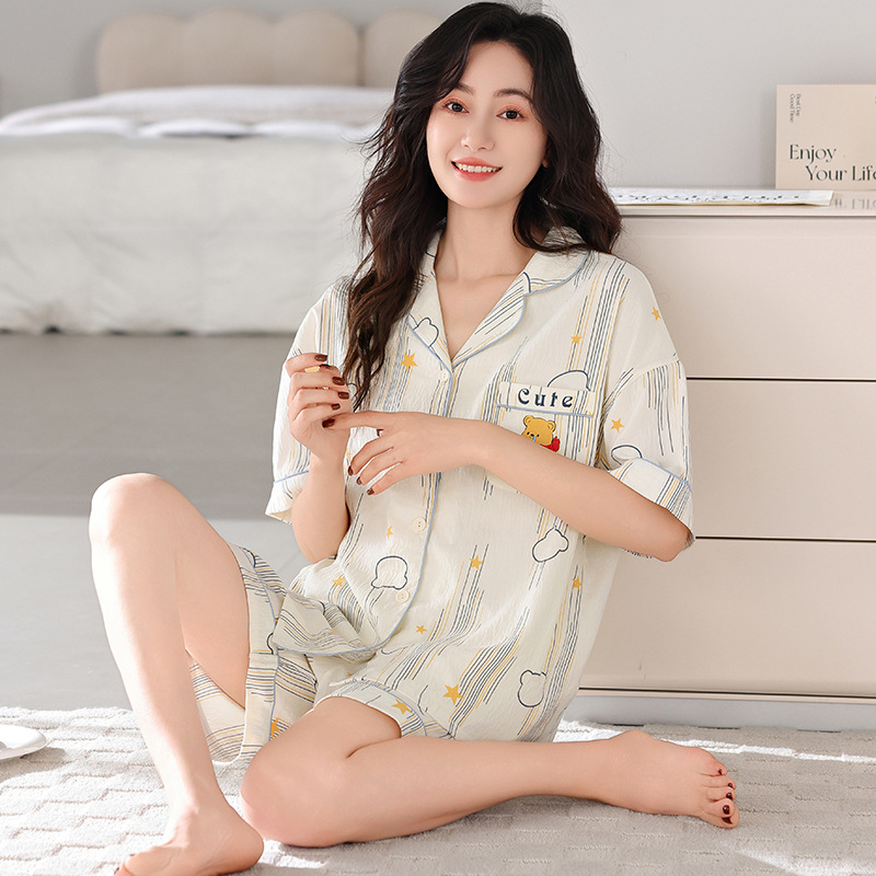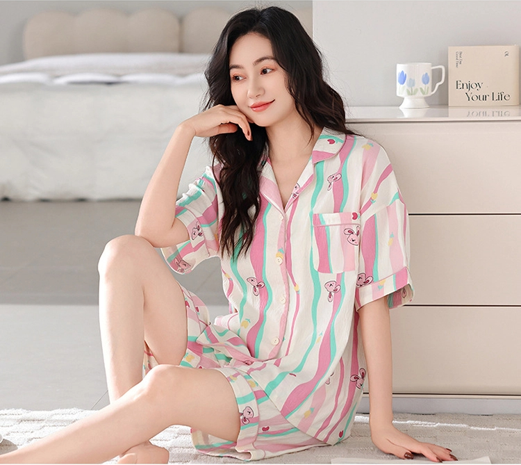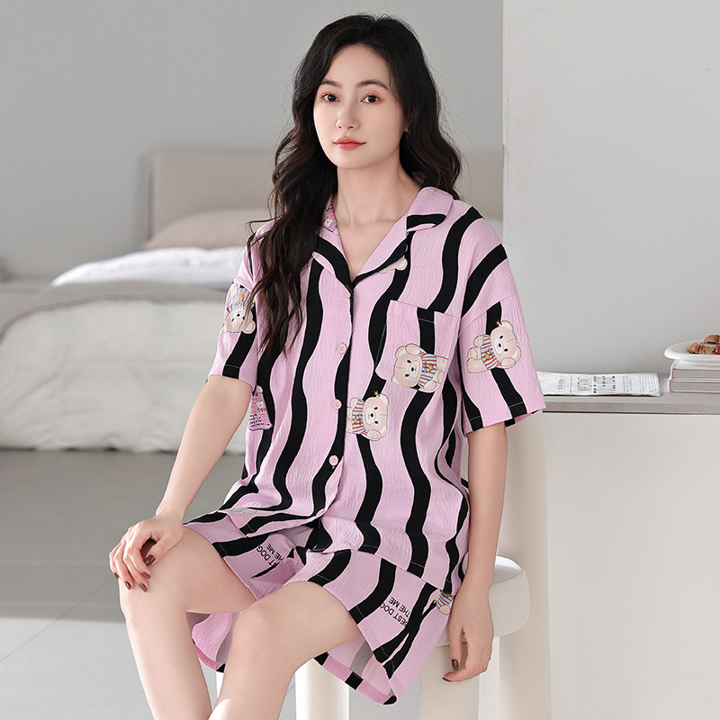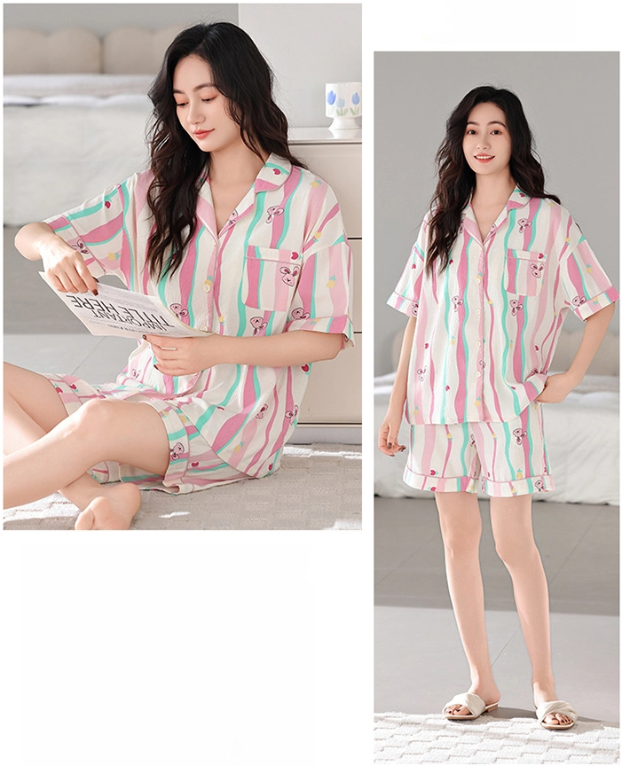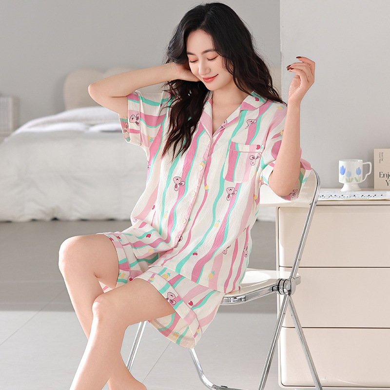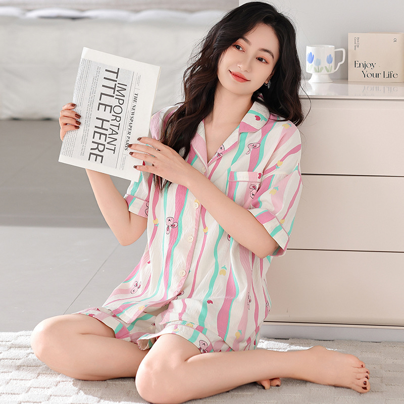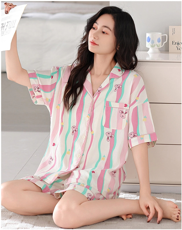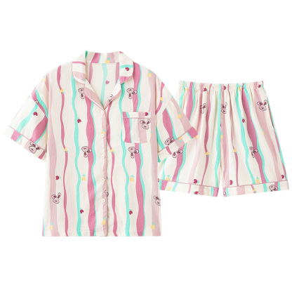Sweet dopamine striped short-sleeved shorts pajama set