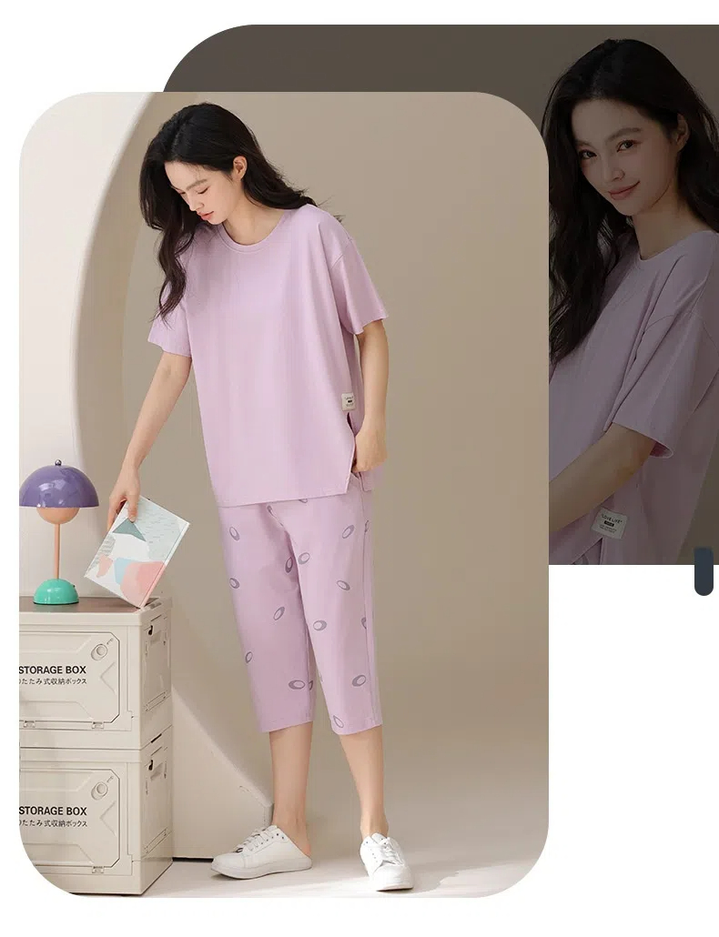夏天短袖七分褲薄款涼感家居服